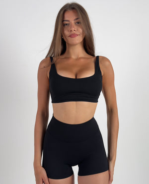 to prosty, ultrakobiecy top o fasonie inspirowanym opaską, wzbogacony o cienkie ramiączka dla większego komfortu i stabilności. Jego gładka, przylegająca forma pięknie podkreśla dekolt i ramiona, tworząc subtelny, ale wyrazisty look.